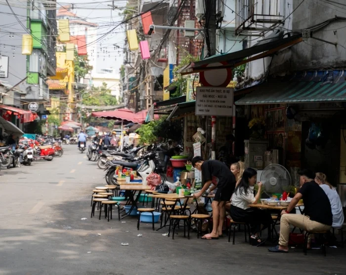 Matka jatkuu perinteisellä polkupyörätaksilla, niin sanotulla cyclolla, vanhan kaupungin kapeilla kujilla, missä eloisa kaupankäynti ja paikalliselämän tunnelma tempaavat mukaansa. Vanha kaupunginosa on tunnettu 36 kadustaan, jotka alun perin nimettiin siellä myytyjen tuotteiden, kuten bambun, silkin, paperin ja tinan mukaan. Nykyään monet katujen nimet ovat säilyneet, ja ilmapiiri huokuu paikallista viehätystä: hanoilaiset käyvät edelleen kauppaa, keskustelevat keskenään ja tarjoilevat höyryävää pho-keittoa katukeittiöistään.