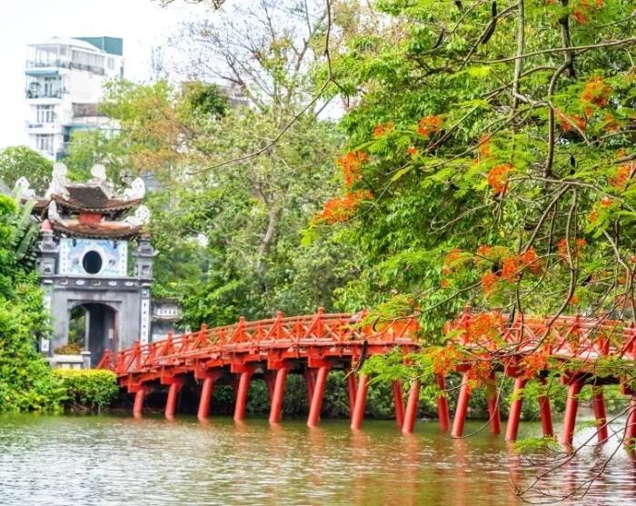 Kahvihetken jälkeen kävelet kauniin Huc-sillan yli Ngoc Son -temppeliin, joka sijaitsee keskellä Hoan Kiem -järveä. Sillan nimi tarkoittaa ‘paikkaa, jota aamuaurinko koskettaa’. Täällä kuulet legendan keisarista, taikamiekasta ja jättiläiskilpikonnasta – ja saat tietää, kuinka järvi sai nimensä sekä miksi se on erityisen merkityksellinen kaupungille.
