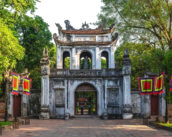 Seuraavaksi sinut kuljetetaan Kirjallisuuden temppeliin, joka on rauhallinen 1100-luvulta peräisin oleva rakennuskompleksi, joka perustettiin kiinalaisen filosofin Kungfutsen oppilaiden toimesta. Lähes tuhannen vuoden ikäisenä temppeli on harvinainen ja hyvin säilynyt esimerkki perinteisestä vietnamilaisesta arkkitehtuurista: sen pylväskäytävät, lammikot ja vehreät sisäpihat tarjoavat edelleen nuorille opiskelijoille mahdollisuuden käydä rukoilemassa onnea tulevia kokeita varten.
