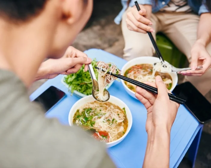 Lounaalla kannattaa lähteä etsimään Hanoin kuuluisaa katuruokaa. Maista höyryävää pho-keittoa, ihastu grillatun bun chan tuoksuun tai nappaa rapea banh mi mukaasi matkan varrelle.