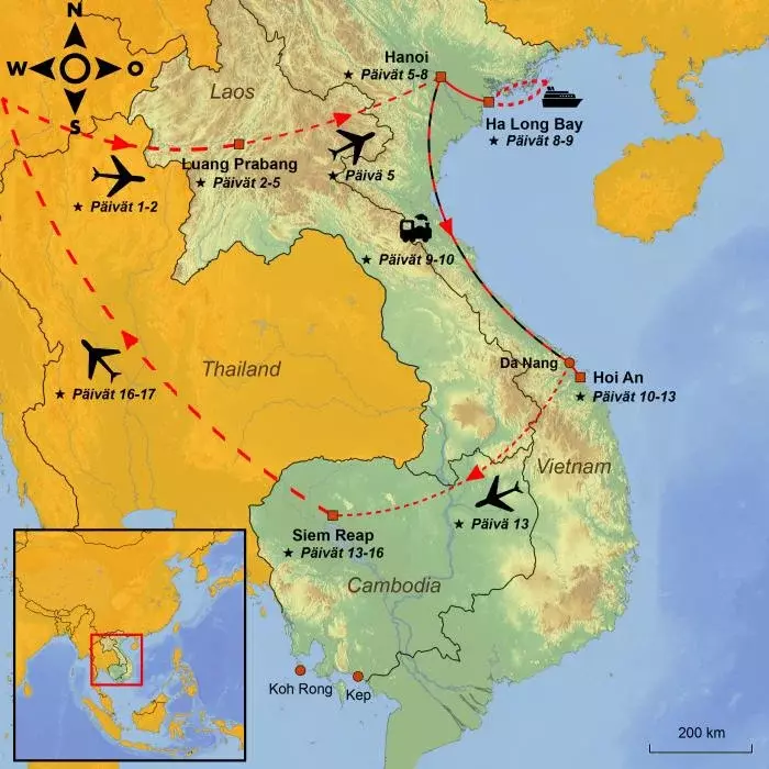 Tällä kiertomatkalla pääset tutustumaan kolmeen Indokiinan kauneimpaan maahan – Laosiin, Vietnamiin ja Kambodžaan – joista jokaisella on oma ainutlaatuinen historiansa, kulttuurinsa ja luontonsa.