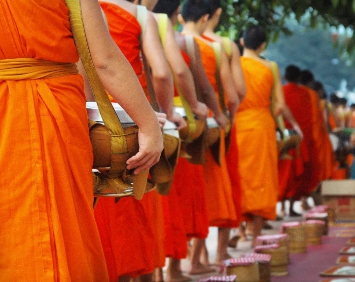 Joka aamu varhain Luang Prabangissa voi todistaa ainutlaatuista rituaalia: sadat munkit kulkevat hiljaisesti kaupungin katuja keräten almuksia. Jokainen perhe lähettää edustajan kadulle tuomaan ruokaa tai juotavaa munkkien kulhoihin. On vaikea olla vaikuttumatta siitä kunnioittavasta hiljaisuudesta ja syvästä arvokkuudesta, joka ympäröi tätä päivittäistä rituaalia.