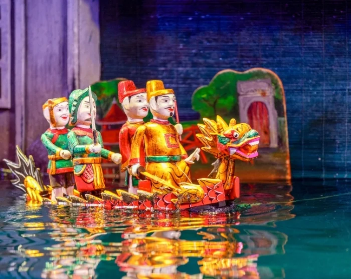 Päivän kaupunkikierroksen kruunaa perinteinen vietnamilainen vesinukketeatteriesitys – ainutlaatuinen kulttuurielämys, jossa vuosisatoja vanhan perinteen mukaisesti nuket tanssivat veden pinnalla elävän musiikin ja klassisten kertomusten säestämänä.