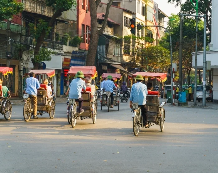 Matka jatkuu perinteisellä polkupyörätaksilla, niin sanotulla cyclolla, vanhan kaupungin kapeilla kujilla, missä eloisa kaupankäynti ja paikalliselämän tunnelma tempaavat mukaansa. Vanha kaupunginosa on tunnettu 36 kadustaan, jotka alun perin nimettiin siellä myytyjen tuotteiden, kuten bambun, silkin, paperin ja tinan mukaan. Nykyään monet katujen nimet ovat säilyneet, ja ilmapiiri huokuu paikallista viehätystä: hanoilaiset käyvät edelleen kauppaa, keskustelevat keskenään ja tarjoilevat höyryävää pho-keittoa katukeittiöistään.
