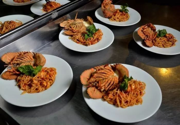 Ateriat tarjoillaan erinomaisessa ravintolassa, ja baarissa on tarjolla viileitä juomia.