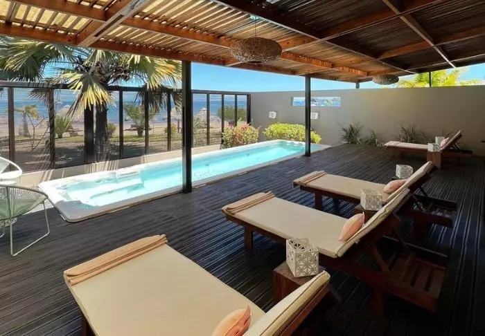 Uima-altaalla näet vilauksen merestä ja Madagaskarin oman pöytävuoren, joka on yhtä tasainen kuin pannukakku. Aulan yläpuolella on oleskelutila, jossa voit rentoutua sohvalla, lukea hyvää kirjaa ja nauttia kauniista näköaloista.