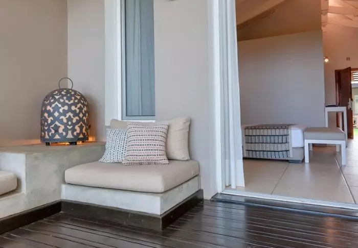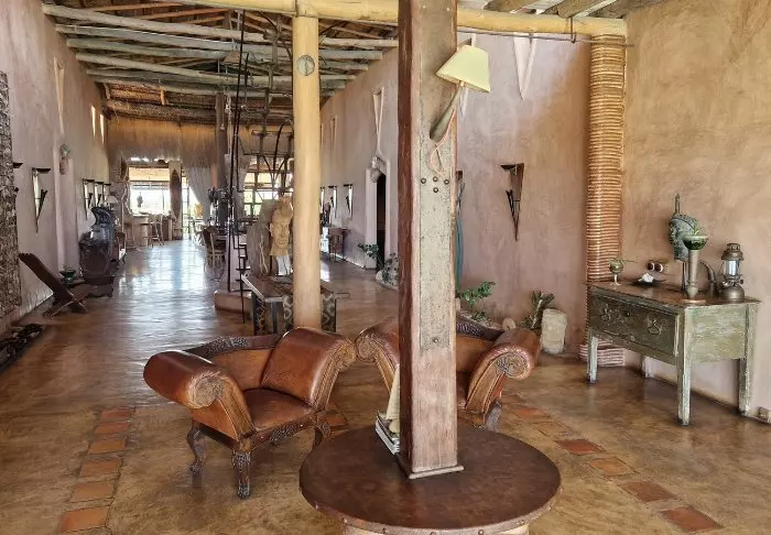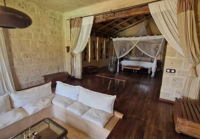 Sisällä voit selvästi tuntea Afrikan mantereen vaikutuksen. Ruskeat värit, puu ja kivi hallitsevat, mutta ylellisellä ja tyylikkäällä tavalla. Kaikki on kauniisti sisustettua, ja tuntuu kuin olisit käymässä yksityisen taidekeräilijän luona.