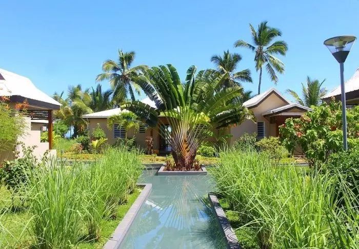 Resort koostuu tummasta puusta rakennetuista viihtyisistä bungaloweista, jotka sijaitsevat rannalla ja joita ympäröivät kauniit kukkivat pensaat ja köynnöskasvit. Kaikissa bungaloweissa on oma terassi meri- tai puutarhanäköalalla – voit siis nauttia auringonlaskusta drinkkiä siemaillen varpaat (melkein) hiekassa.