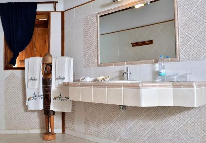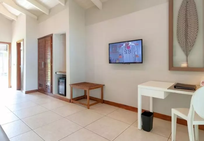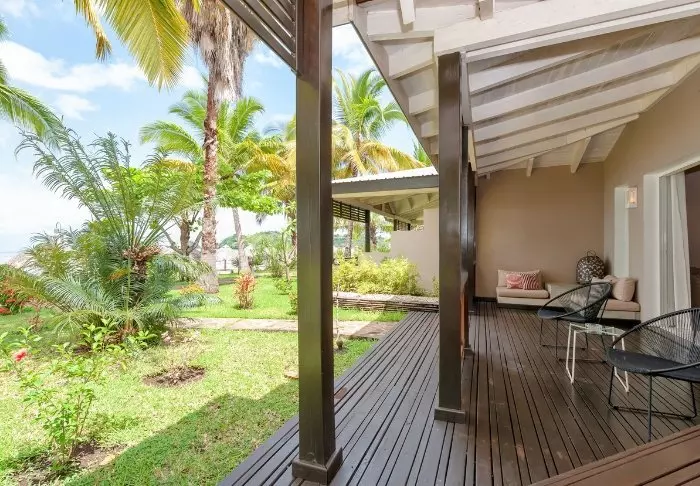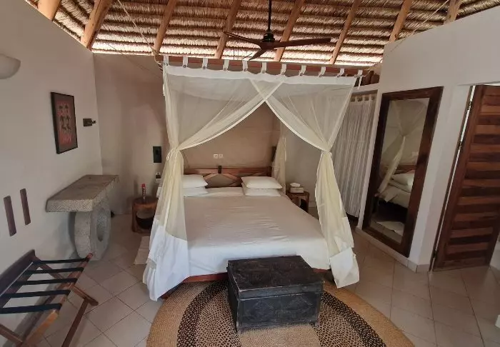 Sisustus on yksinkertainen ja luonnollinen. Huoneissa on puulattiat, isot vuoteet hyttysverkoilla ja kauniita sisal- ja kangaselementtejä. Lisäksi mukavuuksiin kuuluvat ilmastointi, WiFi, tallelokero ja minibaari. Kylpyhuoneet ovat tilavia ja valoisia, ja niissä on suihku ja kylpytuotteita.