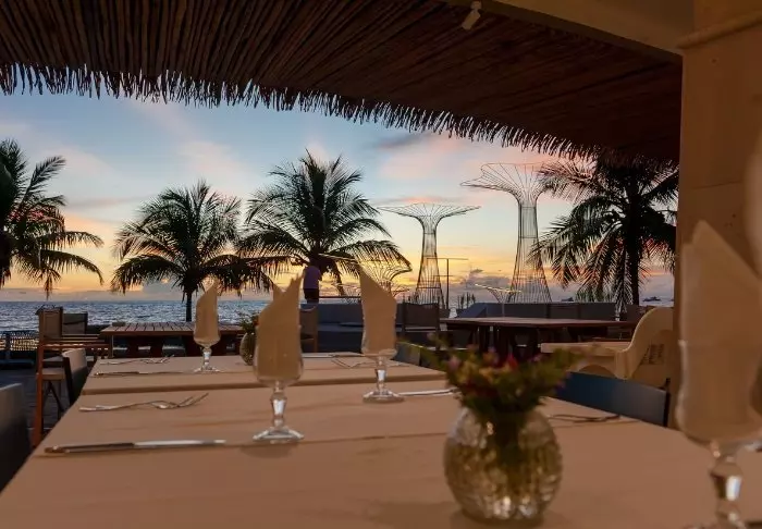 Kuvittele, miltä tuntuisi istua baarissa varpaat hiekassa, siemailla raikasta juomaa ennen herkullisista raaka-aineista valmistettua illallista ja kävellä sitten hyvän aterian jälkeen hiljaa hämärässä omaan bungalowiisi (jossa on tietenkin ilmastointi, minibaari, WiFi ja televisio siltä varalta, että aaltojen ääni ei riitä viihdykkeeksi)?