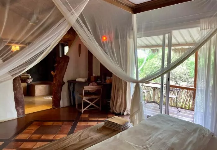 Mökit on hajautettu suurelle alueelle, jota yhdistävät kapeat polut ja trooppiset kasvit. Täällä saatat olla onnekas nähdessäsi kameleontteja matkalla aamiaiselle – ja iltaisin ehkä jopa hiirimakin tai pari.