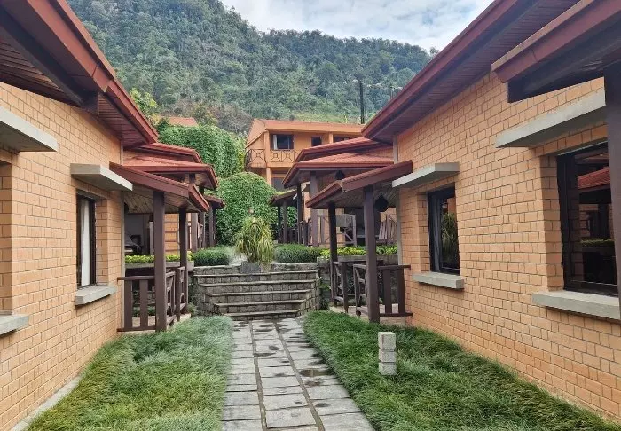 Hotelli sijaitsee kukkulalla, ja oleskelutilasta ja ravintolasta on hienot näköalat kansallispuistoon. Huoneet sijaitsevat itse päärakennuksen takana, ja niihin pääsee vehreän puutarhan halki kulkevia reittejä pitkin.