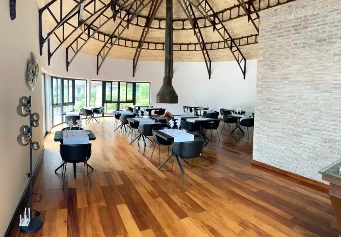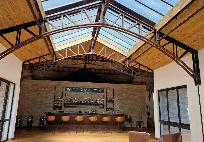 Majapaikalle on tunnusomaista sen supermoderni sisustus, sekä pelkistetty että tyylikäs teollinen muotoilu korkeine kattoineen, suuri avotakka ravintolan keskellä ja teräskattorakenteet. Inspiraatio on selvästi peräisin grafiittikaivoksesta ja siihen liittyvästä alasta, jonka ohitat matkallasi majapaikkaan.