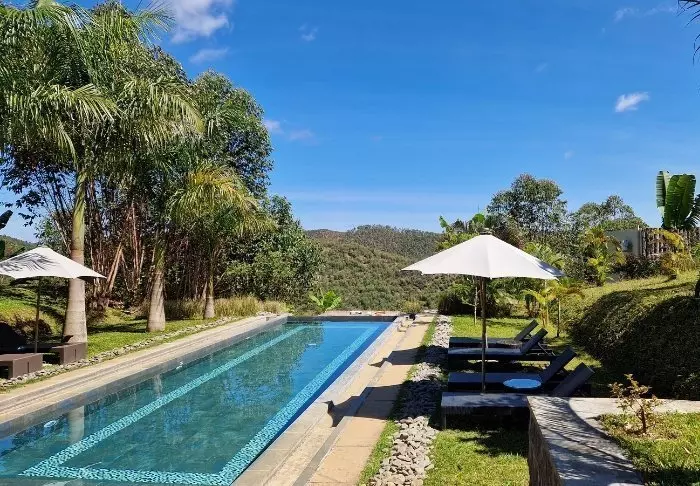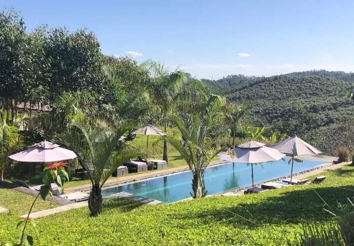 Majapaikka on rakennettu kukkulan päälle, joten uima-allasalueen näkymät ovat erinomaiset. Edessäsi on sademetsä – mutta se ei ole mikä tahansa sademetsä. Se on alkuperäinen sademetsä ajalta, jolloin kaikki maapallon mantereet yhdistettiin ja muodostettiin supermantereeksi.