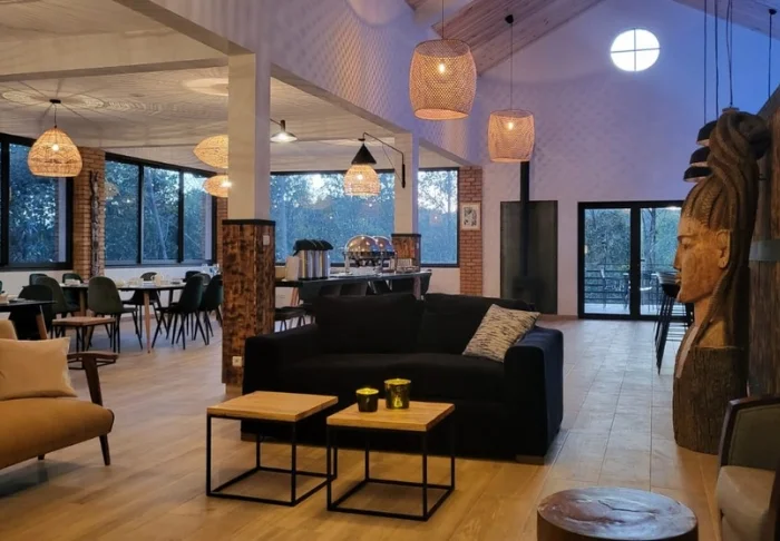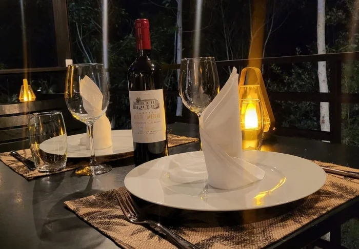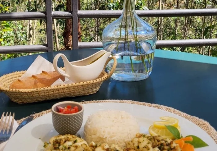 Sademetsän ympäröimä ravintola tarjoaa herkullisen yhdistelmän paikallisia ja ranskalaisvaikutteisia annoksia. Ennen illallista voi nauttia hyvän drinkin viihtyisällä lounge-alueella, josta löytyy myös pelejä. Illan voi halutessaan päättää hyvään espressoon ja crème brûléeseen – luonnollisesti Madagaskarin vaniljalla maustettuna.