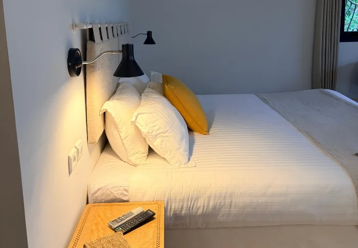 Huoneet sijaitsevat rinteessä sademetsän ympäröiminä, ja sisustus on valoisa ja lämmin: pohjoismaiseen pelkistettyyn tyyliin ripauksella Balin henkeä.