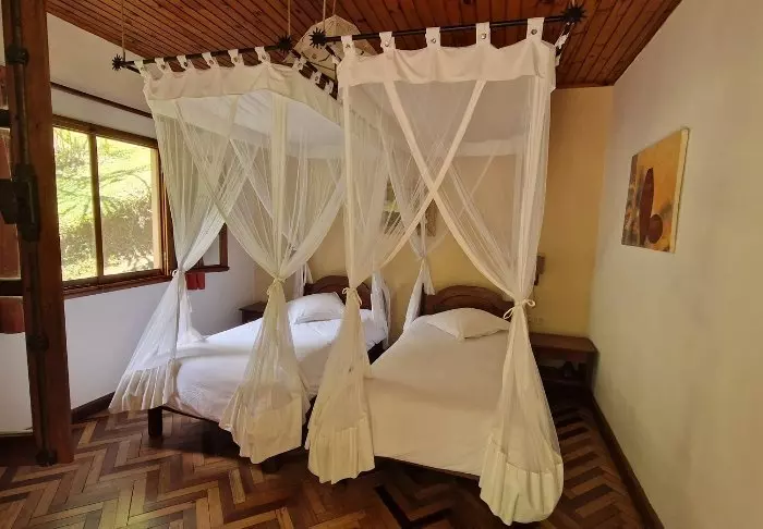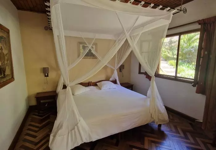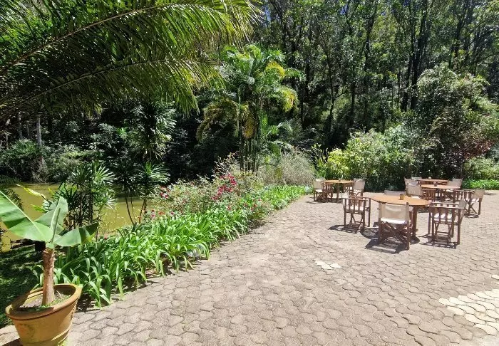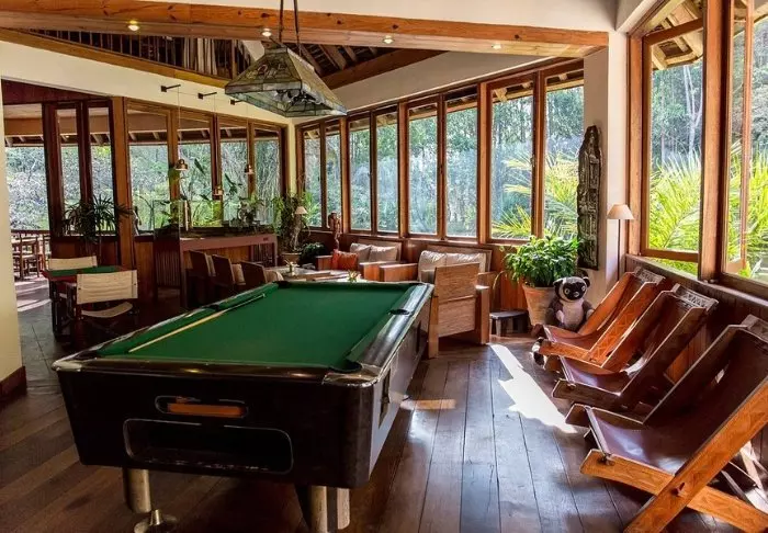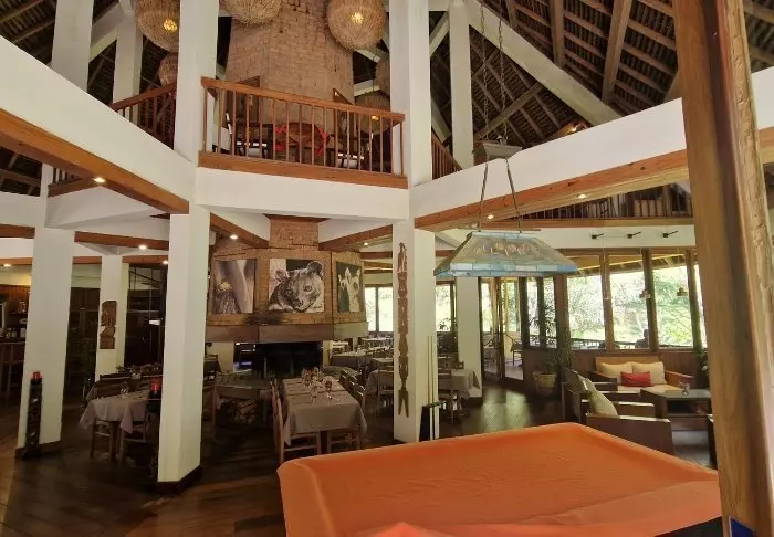 Toisaalta majapaikka on ehdottomasti jo sinänsä vierailun arvoinen. Siellä on 28 bungalowia, jotka on varustettu hyttysverkolla, kattotuulettimella, tallelokerolla ja minibaarilla. Suuri vetonaula on sen sijainti sademetsän keskellä, ja etenkin ravintola, jossa on pienelle järvelle rakennettu terassi.