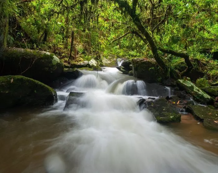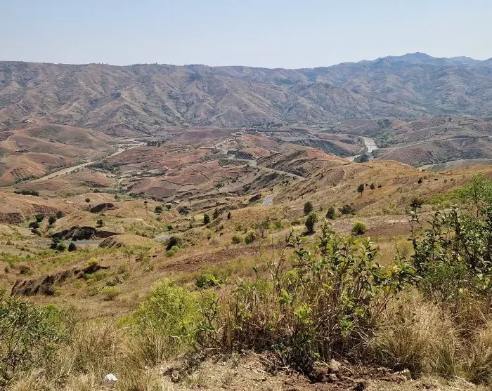Parin tunnin ajomatkan jälkeen mäkisessä tasankomaisemassa runsaine riisipeltoineen maisema muuttuu. Mäet nousevat korkeammalle ja metsät tihenevät. Siellä täällä näet vilauksia joesta laaksojen pohjalla.
