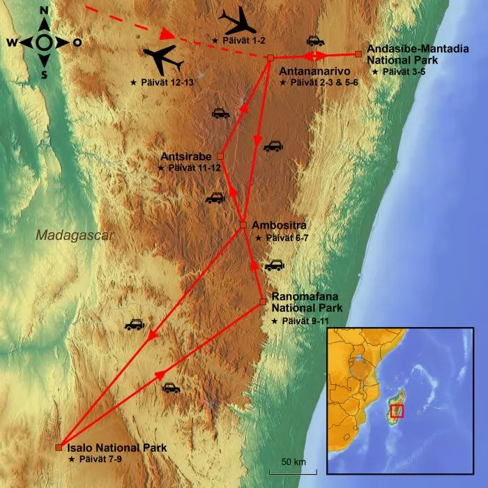 Täältä suuntaat kunnon road tripille Madagaskarin halki. Hyvässä autossa ja oman kuljettajasi kanssa näet, mitä jotkut kutsuvat maailman kahdeksanneksi mantereeksi.