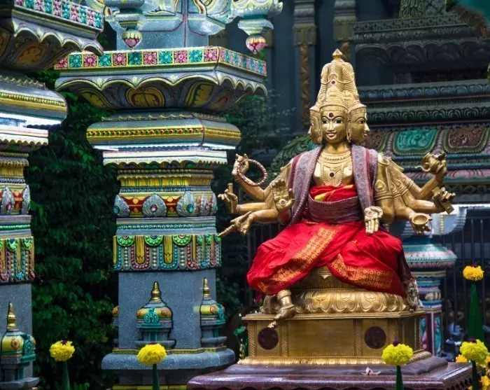 Kierros jatkuu sitten Chinatowniin ja läheiseen hindutemppeliin, Sri Maha Mariammaniin. Se on Malesian vanhin hindutemppeli ja tekee vaikutuksen värikkään, koristeellisen gopuraminsa (sisäänkäyntitorninsa) ansiosta. Sisäänkäyntiä koristavat yksityiskohtaiset hindujumalien hahmot.