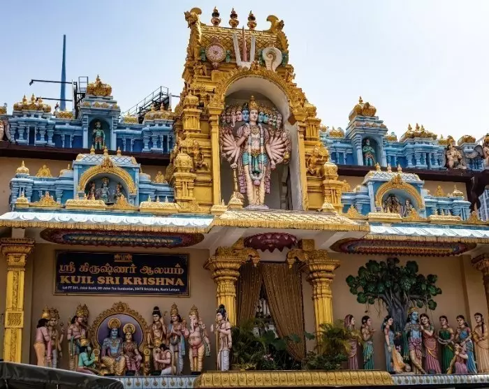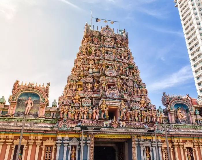 Sitten vierailet Sri Kandaswamy -temppelissä, joka rakennettiin 1900-luvun alussa ja joka on omistettu Lord Muruganille. Temppeli tunnetaan vaikuttavasta arkkitehtuuristaan, jossa perinteinen eteläintialainen tyyli yhdistyy värikkäisiin ja yksityiskohtaisiin koristeisiin. Temppeli on rauhallinen ja hengellinen paikka, joka antaa sinulle syvällisen käsityksen hindulaisuuden perinteistä ja käytännöistä, ja voit halutessasi osallistua rukoukseen.