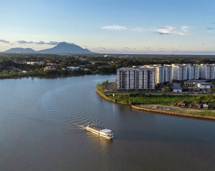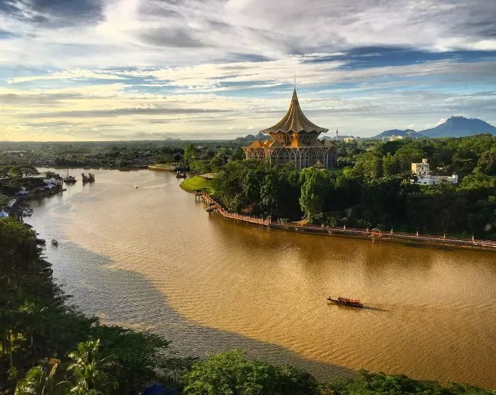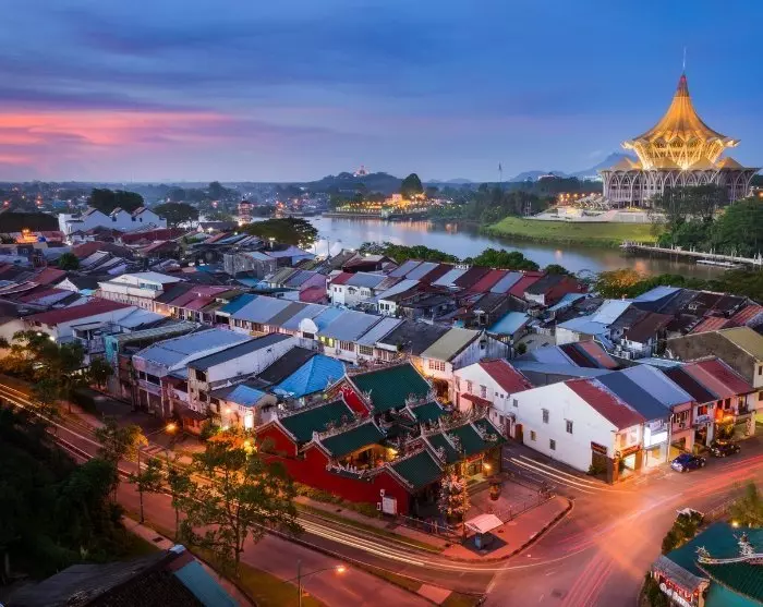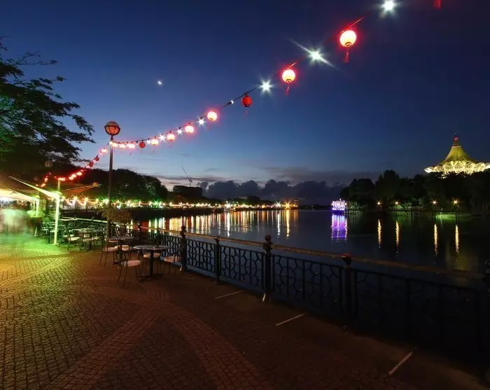Kauniilla paikalla Sarawakjoen varrella sijaitsevassa Kuchingissa on lähes kilometrin pituinen, ravintoloiden ja kauppojen reunustama rantakatu, joka kutsuu osallistumaan paikallisten elämään. Illan tullen voit valita jonkin vanhan kaupungin monista ruokapaikoista, joissa on tarjolla kaikkea tutuista kansainvälisistä suosikeista paikallisiin erikoisuuksiin. Maukas laksa-keitto ja kolo mee -nuudeliruoka ovat hyviä valintoja. Aterian jälkeen voit lähteä kävelykadulle ihailemaan Kuchingin vesi- ja valoshow’ta, joka järjestetään joka ilta klo 20 Sarawakin hallintorakennuksen edessä.