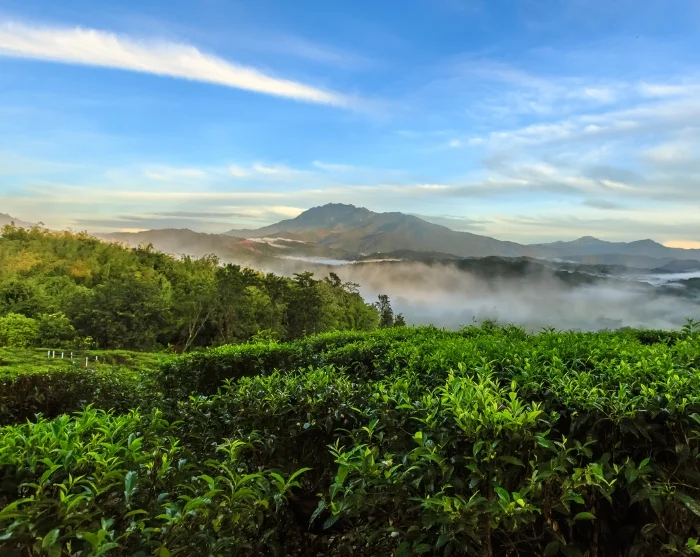 Matkan varrella poiketaan teeviljelmällä, josta avautuu kaunis näköala kumpuilevaan maisemaan. Täällä sinulla on mahdollisuus nauttia lounasta ennen kuin matka jatkuu kohti Kundasangia. Pikkuhiljaa horisontissa alkaa siintää Kinabalu, Kaakkois-Aasian korkein vuori, Ja hiljalleen lähestyvän jylhän huipun näkeminen on elämys jo sinänsä.