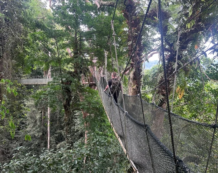 Sinut noudetaan hotelliltasi ja kuljetetaan lyhyen ajomatkan päässä sijaitsevaan Kinabalun kansallispuistoon, joka on UNESCOn maailmanperintökohde. Puisto tunnetaan rehevistä kasvitieteellisistä puutarhoistaan, kuumista lähteistään ja jännittävistä kävelysilloistaan, jotka kulkevat puiden latvoissa.