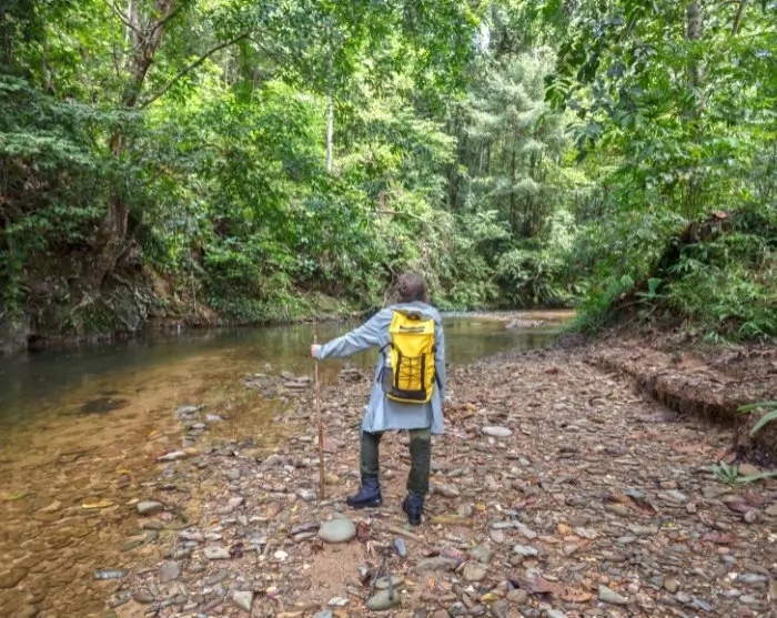 Sademetsässä et tarvitse kaikkia matkatavaroitasi. Pakkaa siis reppuun tai pienempään laukkuun vain välttämättömimmät ja jätä iso matkalaukku säilytykseen hotelliin. Sinut kuljetetaan Batang Ain kansallispuistoon, jonne on noin 5 tunnin ajomatka. Matkalla pysähdytään Lachau Bazaarissa, jossa voit kierrellä pienissä kaupoissa ja paikallisella torilla. Sinulla on myös tilaisuus nauttia varhainen lounas yhdessä paikallisista kahviloista ennen kuin jatkat matkaa kohti Batang Ai -järveä. Järvelle saavuttuasi nouset perinteiseen pitkäveneeseen, jonka kyydissä seilaat sivilisaation keskeltä iban-heimon kotiseudulle, missä odottaa koskematon luonto (ja olematon mobiiliverkko). Venematka kestää noin 1½ tuntia.