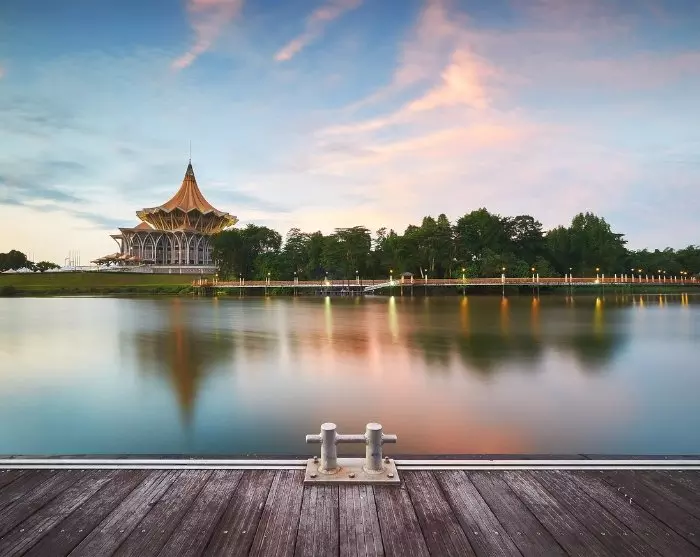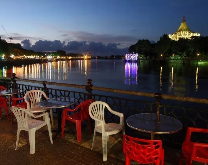 Kauniilla paikalla Sarawakjoen varrella sijaitsevassa Kuchingissa on lähes kilometrin pituinen, ravintoloiden ja kauppojen reunustama rantakatu, joka kutsuu osallistumaan paikallisten elämään. Illan tullen voit valita jonkin vanhan kaupungin monista ruokapaikoista, joissa on tarjolla kaikkea tutuista kansainvälisistä suosikeista paikallisiin erikoisuuksiin. Maukas laksa-keitto ja kolo mee -nuudeliruoka ovat hyviä valintoja. Aterian jälkeen voit lähteä kävelykadulle ihailemaan Kuchingin vesi- ja valoshow’ta, joka järjestetään joka ilta klo 20 Sarawakin hallintorakennuksen edessä.