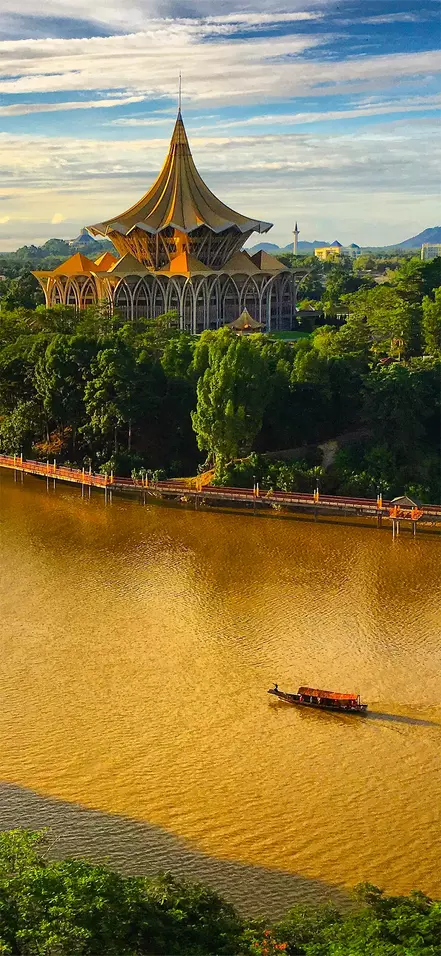 Suurkaupungin sykkeestä suuntaat Borneon lämpöön ja Sarawakin pääkaupunkiin Kuchingiin. Tämä Sarawakjoen varrella sijaitseva viehättävä kaupunki toimii tukikohtanasi, josta käsin tutustut alueen luonto- ja kulttuuriaarteisiin muun muassa jännittävällä opastetulla kaupunkikierroksella.