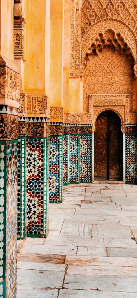 Siinä missä medina tuntuu monin tavoin kaoottiselta, Madrasa Ben Youssef puolestaan huokuu rauhaa. Historiallinen monumentti on arkkitehtoninen helmi, jonka symmetrinen muotoilu ja koristeellisten mosaiikkien kuvakieli on muodostunut Marokon symboliksi.