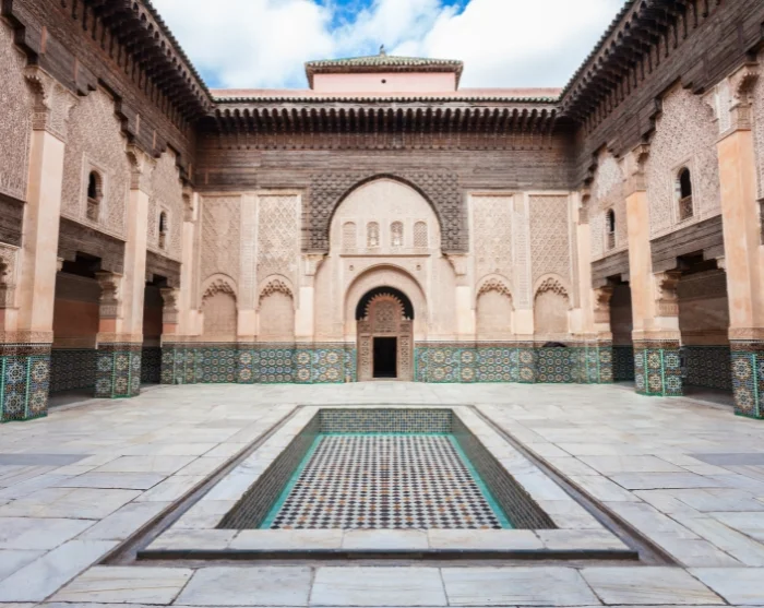 Medina on kaupungin historiallinen sydän, jossa sijaitsevat vanhat moskeijat ja madrassat. Täällä käsityöläiset työskentelevät ja kauppa käy vilkkaana. Kadut ovat kapeita ja labyrinttimaisia, ja sanotaan, että muinaiset medinat rakennettiin juuri tällaisiksi, jotta asukkaat voisivat helposti piiloutua viholliselta – joka taatusti eksyisi, ellei olisi itse syntynyt medinan muurien sisäpuolella. Voit kuitenkin olla huoletta, opas tuntee medinan kuin omat taskunsa ja kulkee vaivattomasti jopa kaikkein mutkikkaimmilla kujilla. Opas kysyy yleensä, onko sinulla erityisiä toiveita kierroksen suhteen, ja mukauttaa reitin niiden mukaan. Suosittelemme lämpimästi vierailua Madrasa Ben Youssefissa – sen harmoninen ja symmetrinen arkkitehtuuri sekä hienot koristelut tekevät siitä todellisen arkkitehtuurin helmen. Medinan suuri keskusaukio, Jemaa el-Fna, on lähes mahdoton ohittaa. Päivällä aukio saattaa vaikuttaa hieman vaisulta, mutta on hyvä tietää, missä se sijaitsee, sillä illalla aukio muistuttaa jotain Indiana Jones elokuvasta. Aukiolta löytyy oikeita käärmeenlumoajia, ruokakojuja, hennatatuointien tekijöitä ja mehubaareja sulassa sovussa keskenään. Kaupungin tunnetuin maamerkki on Koutoubia-minareetti, joka on myös Marrakechin korkein rakennus.