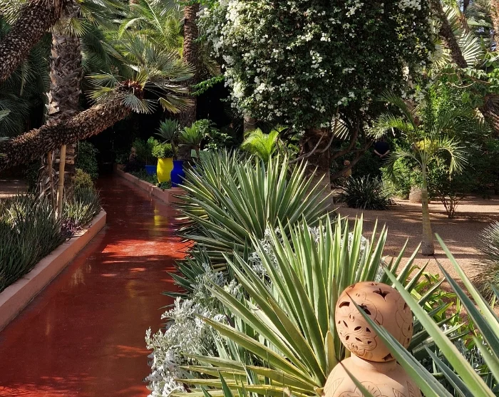 Päivä jakautuu kahteen osaan: ensin luvassa on opastettu kierros medinassa. Toinen osa on vierailu Jardin Majorelle -puutarhassa ja sen yhteydessä sijaitsevassa berberimuseossa. Puutarha on upea keidas keskellä vilkasta kaupunkia, vaikka se (myönnettäköön) onkin hyvin suosittu matkailijoiden keskuudessa. Berberimuseo itsessään ei ole kovin suuri, mutta se on erittäin mielenkiintoinen ja tarjoaa mainion katsauksen berberikulttuuriin.