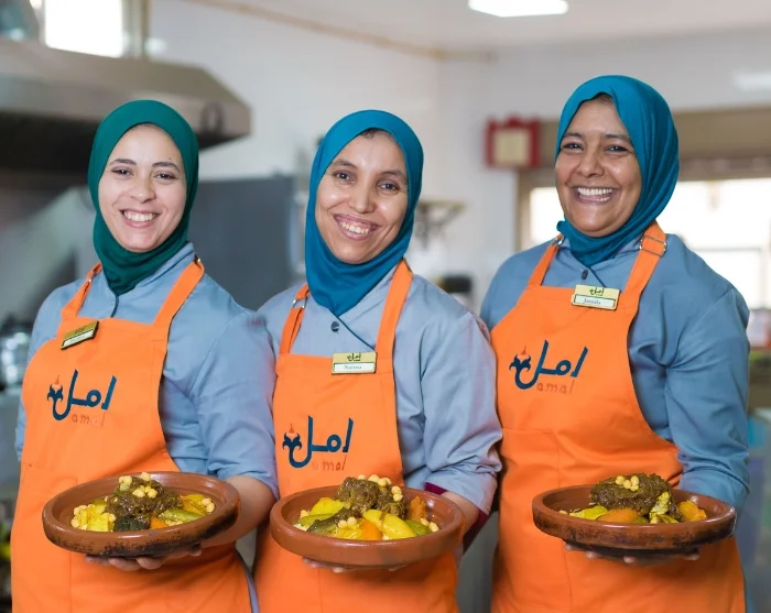 Amal Women’s Training Center on kansalaisjärjestö, joka pyrkii tarjoamaan naisille mahdollisuuden rakentaa uraa ravintola-alalla. Keskukseen on perustettu ravintola, jonka ruokalista vaihtuu päivittäin, jotta opiskelijat haastavat itseään monipuolisesti. Koulutetut kokit ohjaavat naisia jatkuvasti, jotta oppiminen olisi mahdollisimman tehokasta. Saat maistella herkullisia annoksia ja tukea hyvää tarkoitusta.