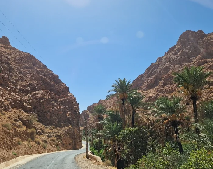 Tie johdattaa Dadesinlaakson poikki, joten voit ihailla sekä peltoja että vaikuttavia palmuja dramaattisten kallioseinämien kohotessa ympärilläsi. Vanhat kasbaht seisovat rivissä peltojen keskellä ja korostavat vehreän alamaan ja karujen kallioiden välistä kontrastia.