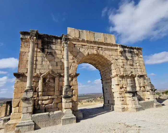 Meknesistä matka jatkuu vaikuttaville Rooman aikaisille raunioille, Volubilisiin, joka sijaitsee noin 30 kilometriä pohjoiseen kaupungista. Seisoessasi ”Triumfikaaren” luona entisessä roomalaisessa kaupungissa, pylväiden ja ikivanhojen mosaiikkien ympäröimänä, voit nauttia näkymästä vihreille oliivilehdoille ja reheville pelloille. On helppo ymmärtää, miksi roomalaiset valitsivat juuri tämän paikan kaupungilleen.