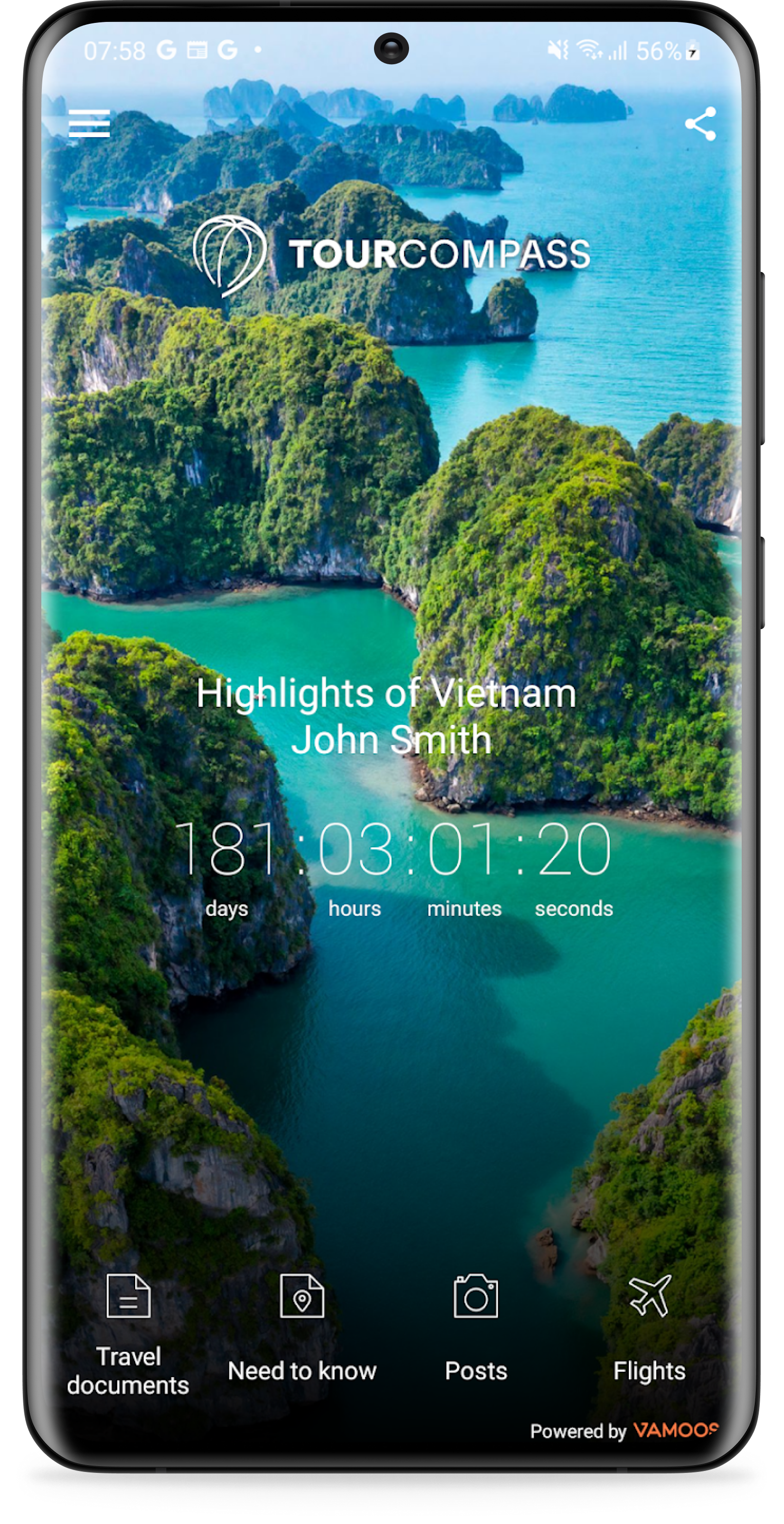 TourCompassin matkasovellus on palvelu asiakkaille, jotka ovat varanneet matkan TourCompassilta. Kun varaat meiltä matkan, lähetämme sinulle kirjautumistiedot sovellusta varten. Lähtöpäivän lähestyessä kaikki tärkeät matkustusasiakirjat päivitetään sovellukseen, ja voit tarkastella tietoja helposti milloin tahansa matkasi aikana. Useimpia toimintoja on mahdollista käyttää offline-tilassa, mutta jotkin niistä edellyttävät paikallista matkapuhelinverkkoa tai WiFi-yhteyttä.