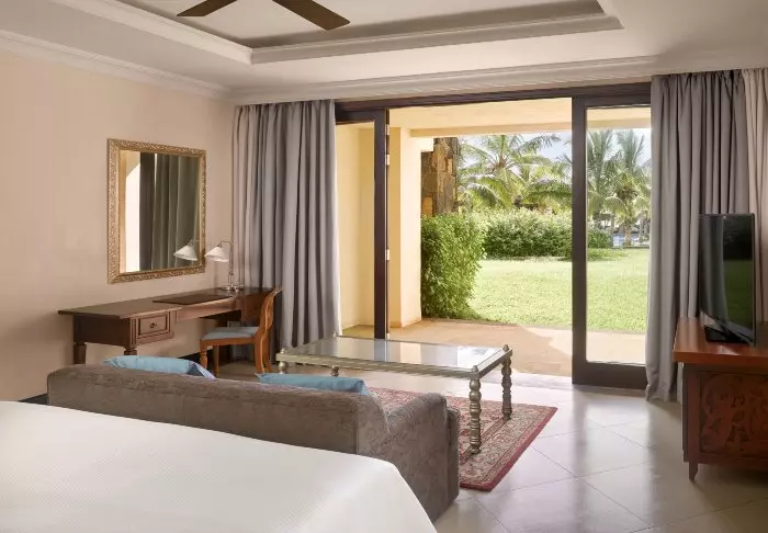Huoneet ovat suuria ja tilavia, ja ne on sisustettu mauritiuslaiseen ja aasialaiseen tyyliin ja varustettu joko parvekkeella tai terassilla. Kaikki huoneet antavat merelle. Kaikissa huoneissa on ilmastointi, minibaari, teen- ja kahvinkeittovälineet, taulutelevisio – kaikki mukavuudet, mitä voit viiden tähden lomakeskukselta odottaakin. Koko hotellin alueella on ilmainen WiFi.