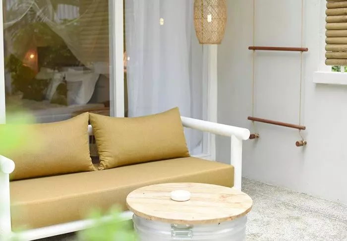 Täällä ei ole korkeita muureja tai sähköportteja. Sen sijaan aulan lattialla on riippumatot, hiekkaa ja viihtyisä, viehättävä ja intiimi tunnelma.