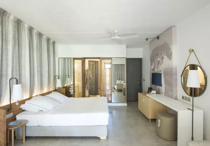 Hotellin 81 huoneesta on kokonainen tai osittainen merinäköala, ja näköalasta voit luonnollisesti nauttia joko omalta parvekkeelta tai terassilta. Sisustuksessa käytetyt kevyet materiaalit ja vaaleat värit tekevät huoneesta raikkaan ja ilmavan oloisen.