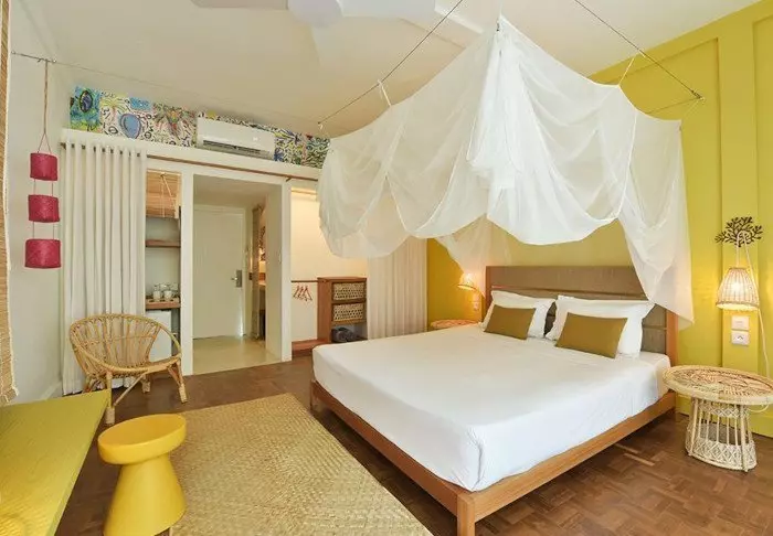 Hotellissa on 116 huonetta, joissa kaikissa on oma kylpyhuone, ilmastointi, teen-/kahvinvalmistusvälineet, minibaari ja ilmainen WiFi. Huoneet ovat hyvin viehättäviä, ja niissä on käytetty hyvin värejä, jotka ovat samalla sekä kutsuvia, moderneja että retrohenkisiä. Kaikissa huoneissa on oma parveke tai terassi. Jokaisessa huoneessa on myös ”rantasetti”, joka sisältää pyyhkeillä ja rantamatoilla varustetun korin ja jopa oman kylmälaukun.
