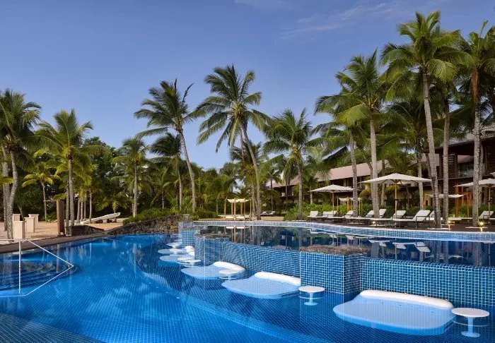 Hotellin keskustassa uima-allasta ja ravintolaa ympäröi kaunis trooppinen kasvillisuus. Uima-allas ei ole valtava, mutta sillä ei ole väliä, koska kompleksin lopussa on hienoin valkoinen ranta, joka johtaa turkoosiin mereen.