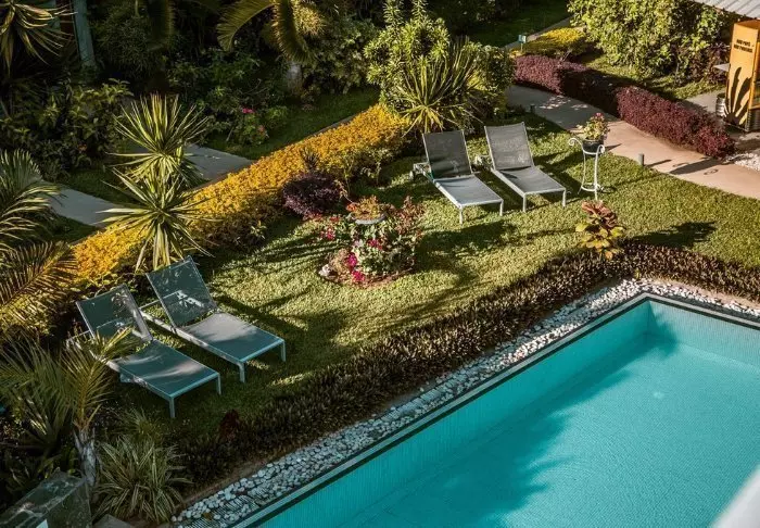 Hotellin keskustassa uima-allasta ja ravintolaa ympäröi kaunis trooppinen kasvillisuus. Uima-allas ei ole valtava, mutta sillä ei ole väliä, koska kompleksin lopussa on hienoin valkoinen ranta, joka johtaa turkoosiin mereen.