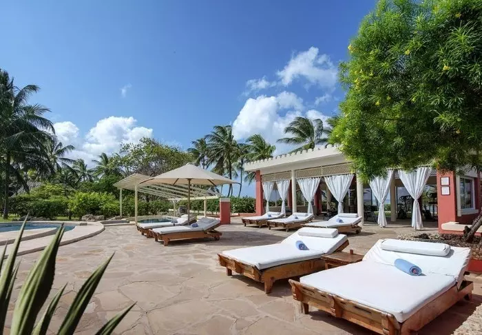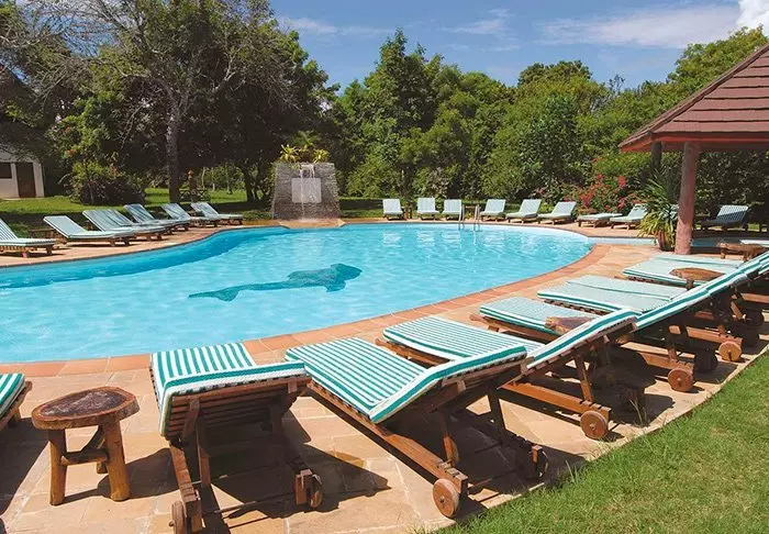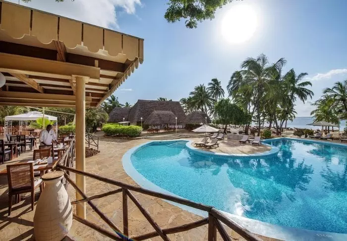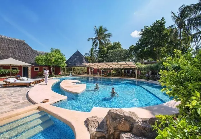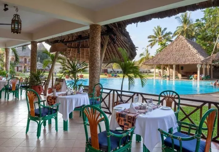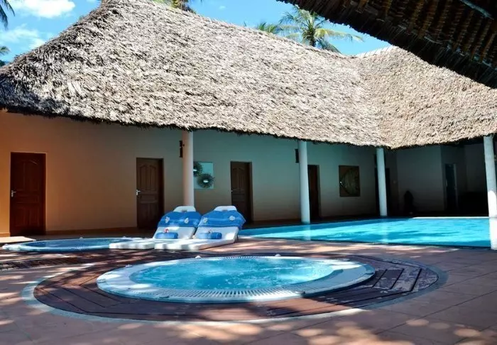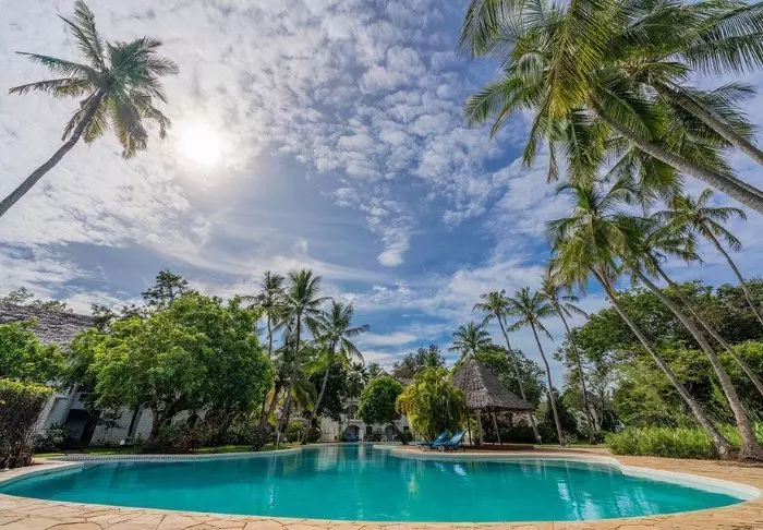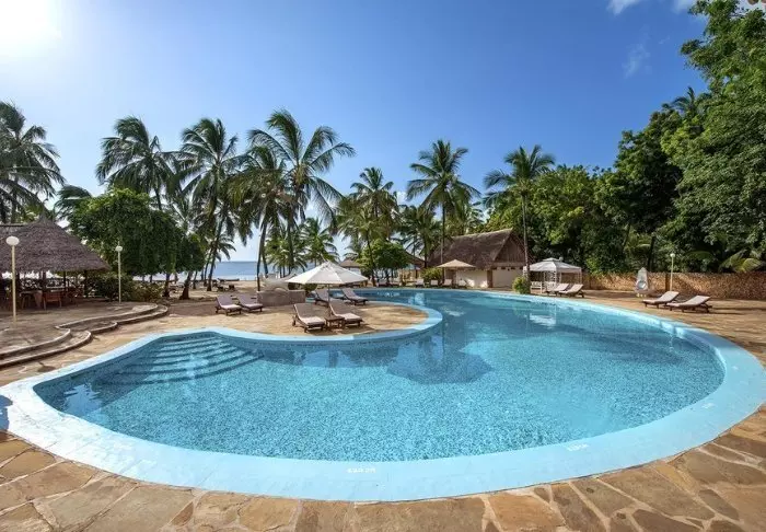 Hotellin uima-allas on peräti 5 metrin syvyinen – todennäköisesti koko Kenian syvin – ja se sopiikin erinomaisesti sukellusharjoitteluun. Kaikkialla on aurinkotuoleja, joten voit itse valita, haluatko lepäillä rannalla, uima-altaalla vai palmujen varjossa vehreässä puutarhassa.
