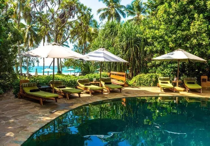 Lomakeskusta ympäröi 80 hehtaarin trooppinen puutarha, ja sen sijainti koralliharjanteen päällä takaa upeat näköalat Intian valtamerelle ja sitä syleileville kullanhohtoisille hiekkarannoille.