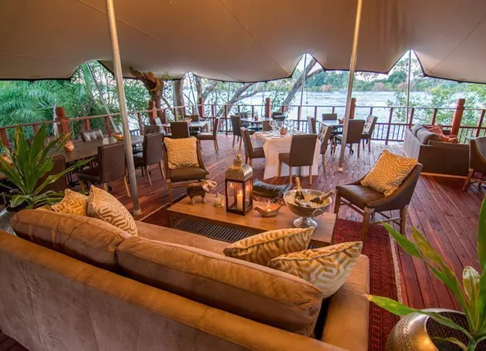 Norsuaitauksen viereen aivan Sambesi-joen päällä olevalle laiturille rakennetussa kahvila-ravintola Elephant Caféssa tarjoillaan lounas (sisältyy hintaan). Ja millainen lounas onkaan tiedossa! Kaikkien ruokien valmistuksessa käytetään paikallisia aineksia, jotka on hankittu lähialueilta: hedelmiä, yrttejä, pähkinöitä, villikukkia jne. – ja luonnollisesti vain kausituotteita. Monet raaka-aineet ovat itse asiassa myös norsujen lempiruokia…ja ravintolan kokit osaavat loihtia niistä toinen toistaan herkullisempia annoksia. Ateria koostuu kolmesta ruokalajista ja palanpainikkeeksi tarjoillaan viiniä – ja kaikki tämä sisältyy hintaan.