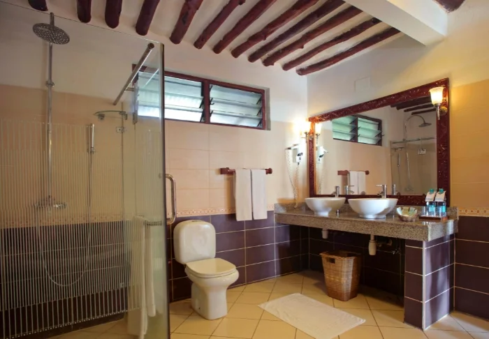 Huoneet on sisustettu itäafrikkalaiseen tyyliin puukalusteilla ja seinät on maalattu vaaleilla väreillä. Kaikissa huoneissa on hyttysverkot, ilmastointi, tallelokero ja minibaari sekä teen- ja kahvinkeittovälineet. Kaikissa huoneissa on lisäksi oma terassi.
