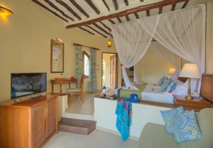 Resortissa on 96 huonetta, joissa kaikissa on hyttysverkko, ilmastointi, tallelokero, terassi sekä ilmainen WiFi. Sisustus edustaa perinteistä sansibarilaista tyyliä, johon kuuluvat värikkäät tyynyt ja paikallisten taiteilijoiden teokset.