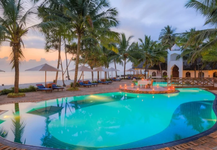 Päivällä voit kävellä hotellin vehreässä puutarhassa, virkistäytyä uima-altaassa, hemmotella itseäsi spa-osastolla, uiskennella kirkkaassa merivedessä tai sukeltaa tutkimaan Sansibarin värikästä vedenalaista maailmaa.